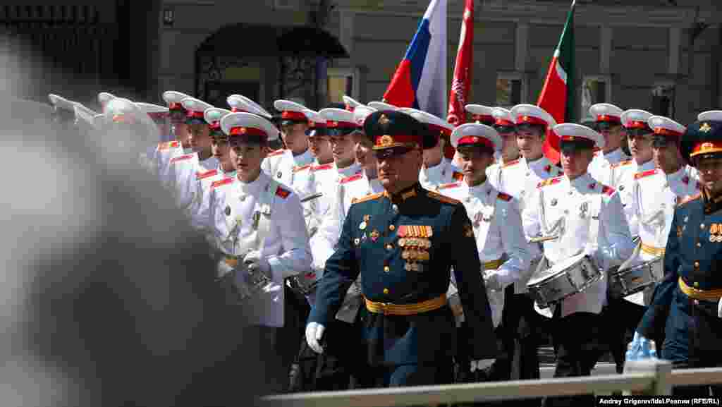 Парад Победы прошел 24 июня на площади Свободы. В этом году его частично коснулись "коронавирусные" ограничения, что отразилось не только на переносе шествия с мая на июнь: например, рядовую публику в этот раз непосредственно на площадь не допустили, а ветераны, приглашенные на парад, сидели на трибунах, возведенных у театра оперы и балета, через одного. В то же время непосредственные участники шествия были без масок. Без маски вышел к участникам и гостям парада и президент Татарстана Рустам Минниханов.