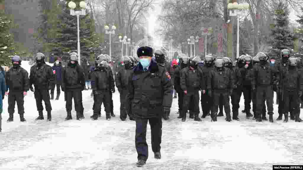 В акции в поддержку Алексея Навального в Уфе участвовали от 2,5 до 4 тысяч человек, задержали не менее ста. Колонна протестующих у Дома Республики была рассеяна полицией. Участники прошли к памятнику Салавату Юлаеву. Была задержана координатор штаба Навального в Уфу Лилия Чанышева, юрист Федор Терин. Известный волонтер Ольга Комлева была задержана еще утром.